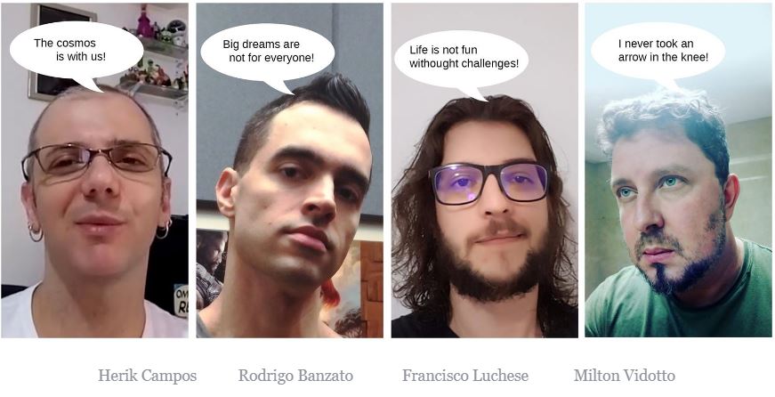 Precisavam de pessoas tão apaixonadas quanto eles e também envolvidas na indústria de games. Então, Rodrigo teve uma ideia de fazer um vídeo e divulgar nas redes sociais. Um apelo às armas, para que pudessem montar uma grande equipe para trabalhar duro no jogo mais envolvente possível, um jogo que gostariam eles próprios de jogar, afinal, também são jogadores.